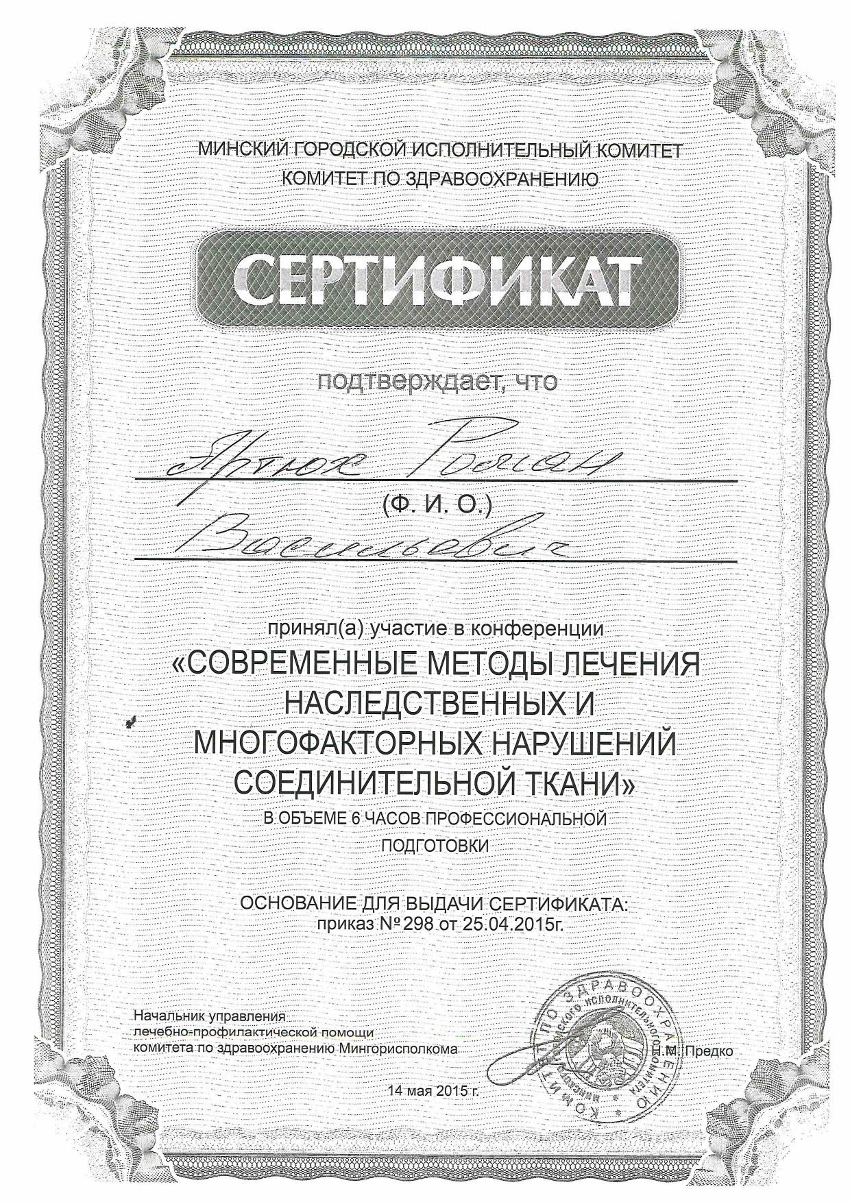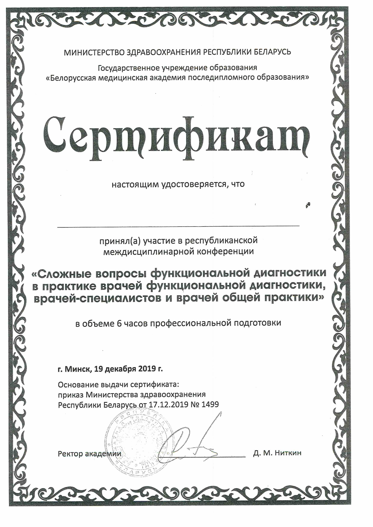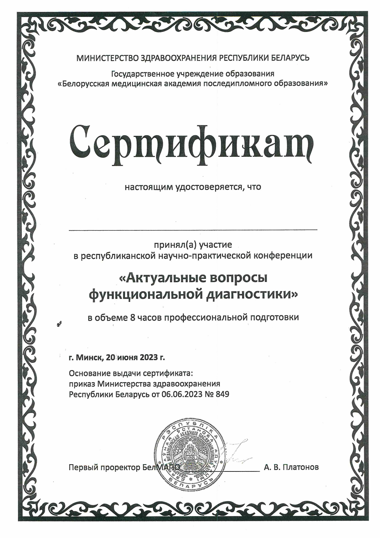 Врач функциональной диагностики ,Высшая категория