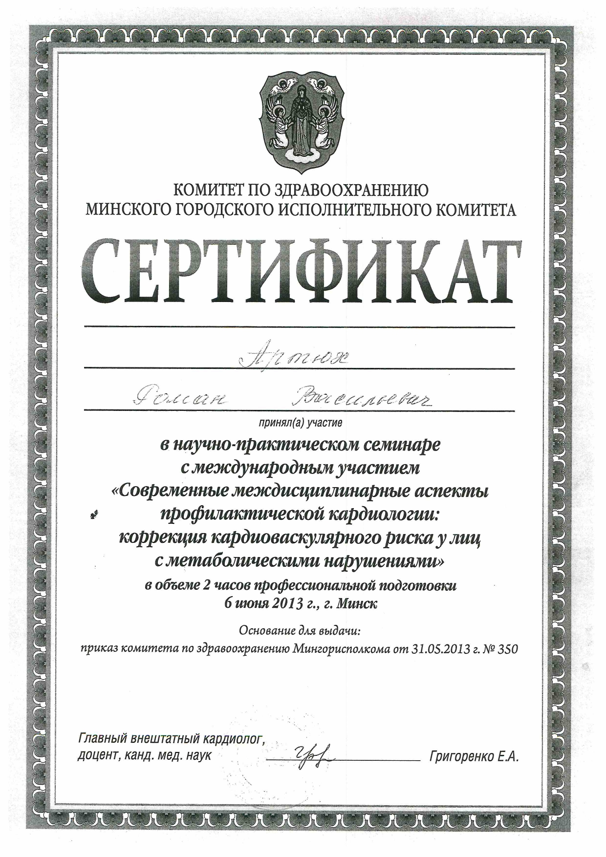Врач функциональной диагностики ,Первая категория