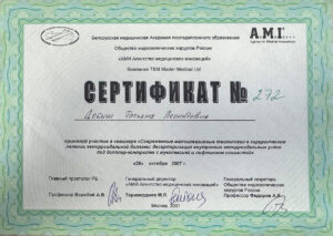 Ведет прием пациентов с 14 лет ( с 14 до 18 лет в присутствии законного представителя ребенка)